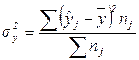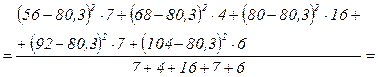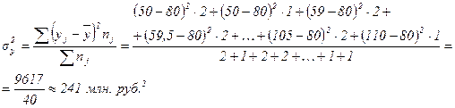 - дисперсия признака в интервальном ряду рассчитывается по формуле: