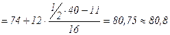 Из данных таблицы 5.1, столбец 7, видно, что интервал, кумулятивная частота которого равна или впервые превышает 20,5 – это 3 интервал (74 – 86 млн. руб.), накопленная частота которого
