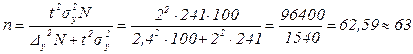 Численность выборки, которую нужно сформировать методом случайного бесповторного отбора, определим по формуле: