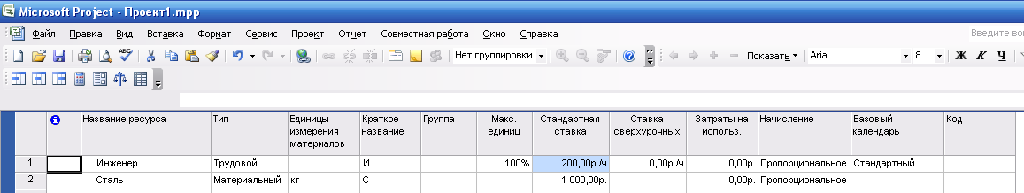 Рисунок 7 - Определение стоимости ресурса. Редактируем таблицу норм затрат А