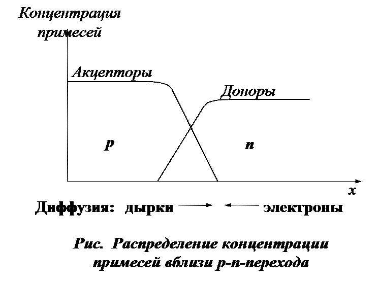 На рис. приведено распределение концентрации примесей в области р-n –перехода.
