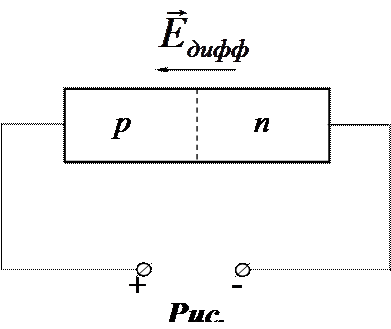 2. Пусть к р- области присоединён положительный полюс источника тока, а к n- области – отрицательный (рис.).
