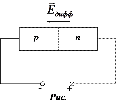 . Поток основных носителей представляет собой диффузионный ток Iдифф. Одновременно через р-n –переход под действием ускоряющего контактного поля