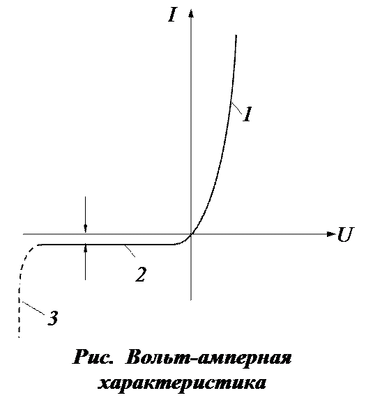 При подаче обратного напряжения ток сначала увеличивается с увеличением напряжения. Но уже при небольшом напряжении все неосновные носители, образующиеся на расстоянии меньшем их диффузионной длины будут втягиваться в переход, и дальнейшее увеличение обратного напряжения не вызовет роста обратного тока: наступает насыщение (участок 2). Обратный ток при этом равен