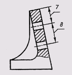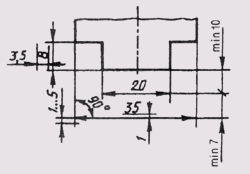 Размерные числа наносят над размерной линией, возможно ближе к ее середине. Зазор между размерным числом и размерной линией должен быть около 1,0 мм. Высоту цифр размерных чисел принимают не менее 3,5 мм (рис. 7).