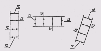 Минимальное расстояние от размерной линии до параллельной ей линии должно быть 10 мм, а между параллельными размерными линиями — 7 мм.