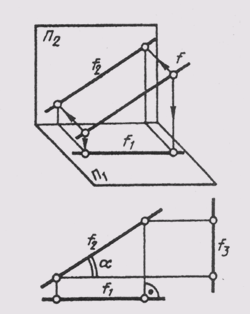 У прямой уровня одна проекция параллельна самой прямой и определяет углы наклона этой прямой к двум другим плоскостям проекций.