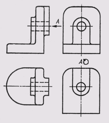 Если какой-либо вид смещен относительно главного изображения, проекционная связь его с главным видом нарушена, то над этим видом выполняют надпись по типу «А» (рис. 166).