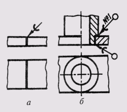 1 — вспомогательные знаки, О — шов по замкнутому контуру, | — монтажный шов;