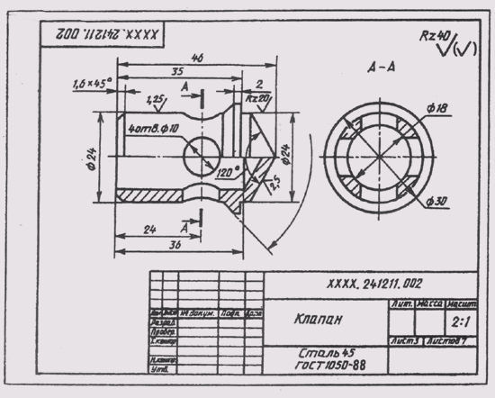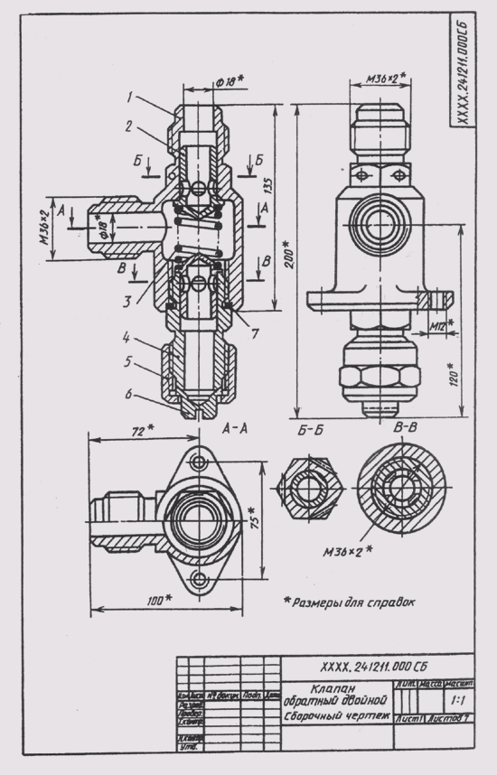 Стандартных деталей клапан не имеет. Сборочный чертеж выполнен в масштабе 1:1.