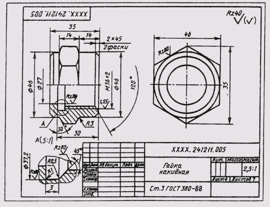Порядок выполнения рабочего чертежа детали по сборочному чертежу изделия аналогичен выполнению чертежа детали с натуры. При этом формы и размеры детали определяются при чтении сборочного чертежа.