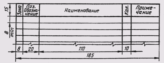 Все элементы на схеме должны быть определены однозначно. Для этого данные об элементах записываются в таблицу (рис. 329), которая заполняется сверху вниз и помещается на первом листе или выполняется в виде самостоятельного документа на формате А4.