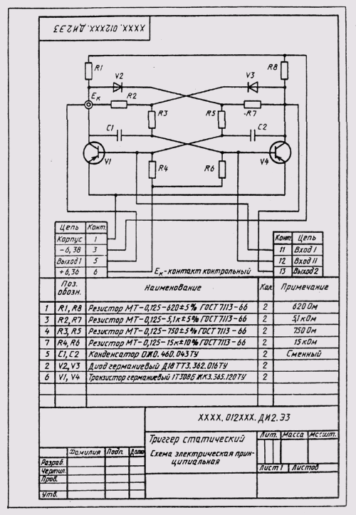 Электрические принципиальные схемы (ЭЗ) выполняют в соответствии с ГОСТ 2.702—75. Обозначения в электрических схемах установлены ГОСТ 2.721—74 — ГОСТ 2.791—74.