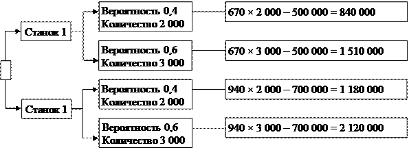 Пример 3. Руководителю отдела нужно принять решение относительно закупки станков. Второй станок более экономичный, но и в то же время более дорогой и требует больших накладных расходов (рис. 8.3). Руководителю нужно выбрать тот станок, который обеспечит максимизацию прибыли.