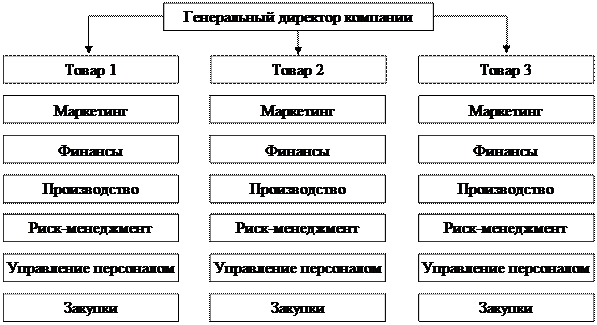 Дивизиональная структура предполагает наличие нескольких структурных подразделений, ориентированных на производство разных товаров, на разных потребителей или реализацию продукта в разных регионах. Отсюда различают дивизионально-продуктовую, дивизиональные структуры, ориентированные на потребителя, и дивизионально-региональную структуру. В последней структуре важнейшую роль играют не руководители функциональных подразделений, а руководители производственных отделов, которые несут полную ответственность за результаты деятельности возглавляемого отдела. Руководители вторичных функциональных служб подчинены директору производственного подразделения. Ответственность за прибыль переносится на уровень дивизионов. Для дивизиональной структуры характерно наличие оперативного управления на уровне производства конкретного продукта и централизованного стратегического управления на уровне верховного управления компанией. Руководитель компании жестко контролирует научно-исследовательские разработки, финансы, инвестиции. Если компания ведет свою деятельность в нескольких регионах, то в каждом из них назначается директор, контролирующий эту деятельность и подчиняющийся генеральному директору (рис. 9.5).