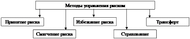 | 3. Методы управления риском | 1. Отказ от совершения рисковых мероприятий 2. Предупреждение потерь 3. Страхование 4. Признание ущерба | |