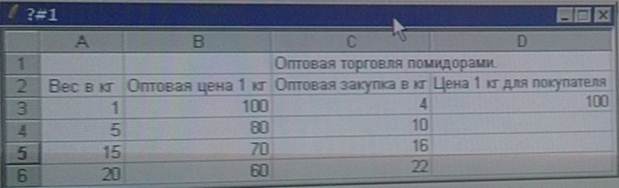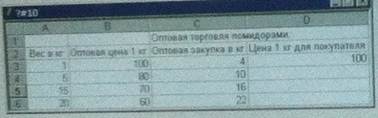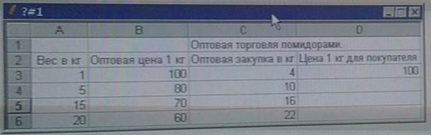 5)на рисунке представлена Таблица в окне активной книги приложения Microsoft Excel. В магазине установлены цены за оптовые покупки: от 1-го до 4-ёх кг,от 5 до 14-ти кг и т.д. В ячейку D3 записана функция: = ПРОСМОТР (C3; $A $3: $A $6; $B $3: $B $6)