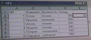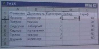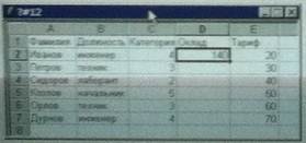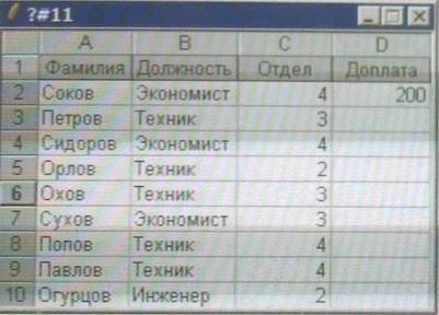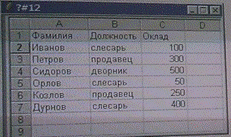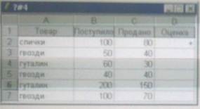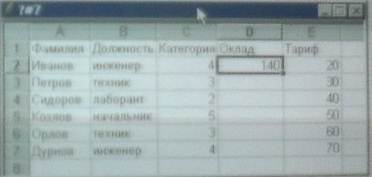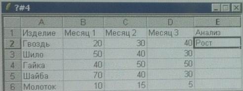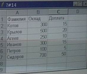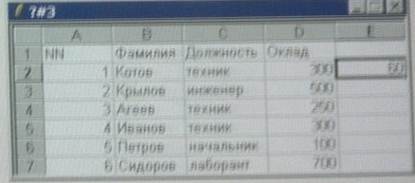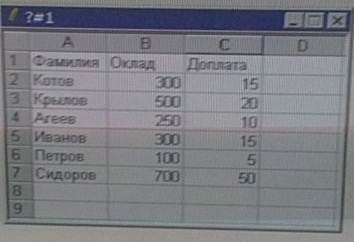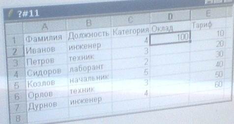 4) на рисунке представлен фрагмент активного листа таблицы.