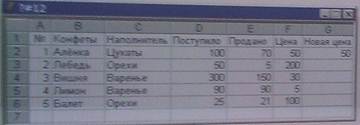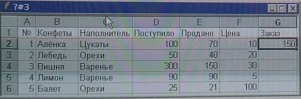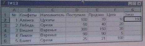 9) В ячейке G2 записана функция = ЕСЛИ (И (Е2> = 0,5*D2C2 = ”Орехи”); F2*2: ЕСЛИ (ИЛИ (C2 = ”Варенье”; E2>0,5*D2); F2: F2*20)