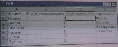 8) На рисунке представлена Таблица, которая расположена в ячейках A1: C7