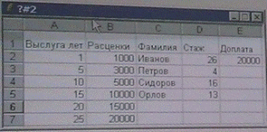 117. На предприятии установлены расценки доплат сотрудникам за выслугу лет: от 1-го года до 4 лет, от 5 до 9 лет и т.д. Требуется определить доплату каждому сотруднику. В ячейку E2 записана функция: = ПРОСМОТР (D2; $A $2: $A $7; $B $2: $B $7). В ответе записать число, которое отобразится в ячейке E4 после копирования функции во все остальные ячейки столбца E.