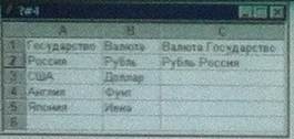 17) В ячейку С2 записана функция объединения Государства и валюты в одной ячейке С2. В ответе запишите эту функцию и предусмотрите возможность копирования этой функции во все остальные ячейки столбца С.
