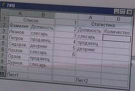 34) сделали активным лист2 и в ячейку В3 записали функцию = СЧЁТ ЕСЛИ (Лист 1! $B $3: $B $8; A3) в ответе записать число, которое отобразится в ячейке B4 (лист 2) после выполнения и копирования функции в ячейки В4, В5. Ответ: 2
