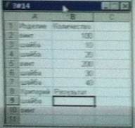 169. В ячейке B9 записана математическая функция = СУММ ЕСЛИ ($A $2: $A $7; аргумент 2; $B $2: $B $7) для определения количества каждого изделия. При записи функции допустили ошибку, пропустив 2-ой аргумент. В ответе запишите пропущенный аргумент.