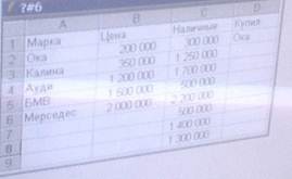 171. В ячейку D2 записана функция = ПРОСМОТР (C2; $B $2: $B $6; $A $2: $A $6). В ответе записать значение, которое отобразится в ячейке D8 после копирования функции во все остальные ячейки столбца D, какой марки автомобиль сможет купить клиент за наличные деньги.