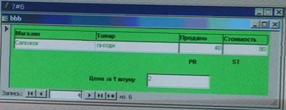 120.На рисунке представлена ФОРМА для одной из таблиц базы данных. В ФОРМУ добавлено вычисляемое поле с надписью Цена а 1 штуку. Название полей таблицы, в которых хранятся Проданное количество товара и Стоимость проданного товара соответственно PR и ST.
