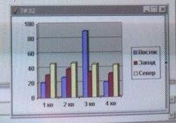 6) Программа MS Graph по данным Таблицы создала Диаграмма. Предварительно не было указано, откуда брать данные для графического представления – из строк или из столбцов. По умолчанию данными являются значения, представленные в.. Ответ: строках
