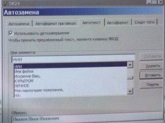 22) На рисунке представлено окно автозамена с открытой вкладкой автотекст с открытом списком. В ответе запишите текст, который будет вставлен в документ при нажатии кнопки вставить. Ответ: Иванов Иван Иванович