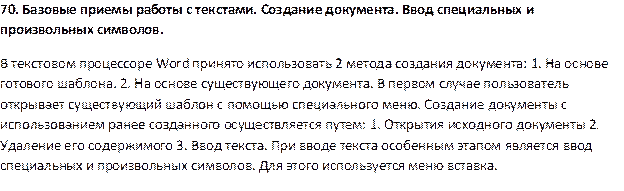 71(72) Базовые приемы работы с текстами. Специальные средства редактирования текста.