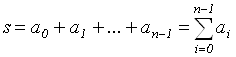 Пусть а[] – заданный массив из n элементов. Сумма всех его элементов в математической форме выглядит следующим образом: