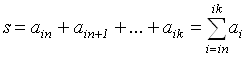 Для вычисления суммы элементов части массива, например, с in– го до ik –го. Следует использовать формулу: