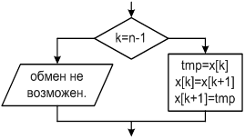 | if(k == n-1) puts("Обмен не возможен."); else { tmp=x[k]; x[k]=x[k+1]; x[k+1]=tmp; } |