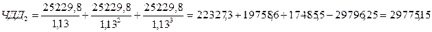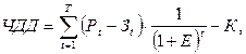 Тогда суммарный чистый дисконтированный доход за весь горизонт расчета равен: