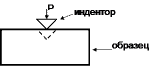 Твердость определяется методом вдавливания твердого наконечника – индентора в испытуемый образец (рис. 1.1.2) и оценивается по глубине или размеру возникающего отпечатка (углубления). Приборы для измерения твердости различаются материалом (твердостью) и формой индентора и величиной прилагаемой нагрузки.