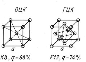 Многие металлы имеют объемноцентрированную (ОЦК) и гранецентрированную (ГЦК) решетки, их характеристики приведены на рис. 1.2.4.