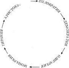 Итак, круговорот форм правления государства: три пра-иильные и три неправильные формы правления сменяют друг друга.