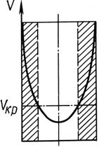 Рис. 2.3.4. Распределение скорости охлаждения (Vохл) по сечению образца при закалке (заштрихована закаленная зона с мартенситной структурой)