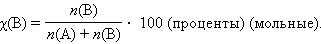 Мольная доля растворенного вещества χ(B) выражается соотношением