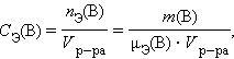 Молярная концентрация эквивалентов вещества B C Э(B) (нормальность – устаревш.) определяется числом эквивалентов растворенного вещества в единице объема раствора, моль∙литр–1: