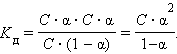 Если выразить равновесные концентрации через концентрацию слабого электролита C и его степень диссоциации α, то получим:
