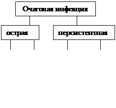 При длительном взаимодействии вируса с макроорганизмом возникает персистентная инфекция (ПИ). В зависимости от состояния организма один и тот же вирус может вызвать как острую инфекцию, так и персистентную (вирусы кори, герпеса, гепатитов В, С, аденовирусы). Клинические проявления при ПИ могут быть выраженными, слабо выраженными, или отсутствовать совсем, вирус может выделяться в окружающую среду или нет. По этим признакам ПИ делят на латентные (скрытые инфекции, без выделения вируса, вызываются он-когенными вирусами, ВИЧ, вирусами герпеса и адено-); хронические (характеризующиеся периодами ремиссий и обострений, когда вирус выделяется в окружающую среду. Примерами хронической инфекции являются герпетическая, аденовирусная, хроническая форма гепатитов В и С и др.); медленные (характеризуются длительным инкубационным периодом, медленным развитием симптомов, ведущих к тяжёлому нарушению функций организма и летальному исходу).