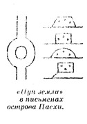 В. А. Обручев полагал, что когда-то вокруг современного острова Пасхи простиралась обширная низменность с городами и селениями. Потом ее стали заливать волны океана, уровень которого неуклонно повышался вместе с таянием льдов. Испуганные жители принялись вытесывать в каменоломнях «статуи с угрожающими лицами и расставлять их по берегу в надежде, что они остановят наступление моря».* Это, конечно, не помогло, и все земли Пацифиды были затоплены, за исключением острова Пасхи — самой высокой части некогда большой страны, население которой «погибло или мало-помалу выселилось на другие острова Полинезии».**