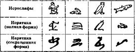 Иероглифы, полукурсивныеи иератические знаки.Сравнительная таблица.