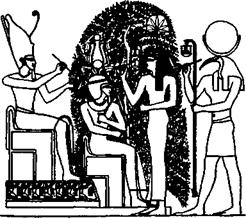 Атум, фараон, Сешет и Тот у дерева Ишед.