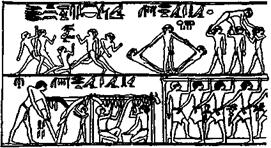 Полив сада перед храмом с помощью шадуфа — водоподъемного журавля. Новое царство.