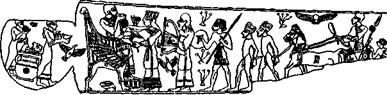 Пленные перед палестинским царьком. С ассирийского рельефа.